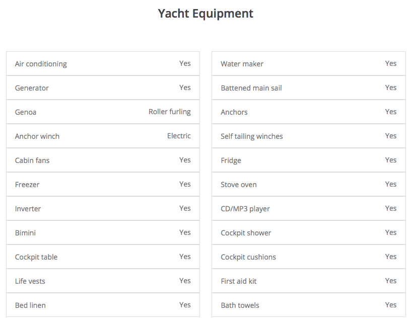 This yacht is perfectly equipped with two fridges, solar panels, dinghy davits and optional generator, aircon & watermaker.