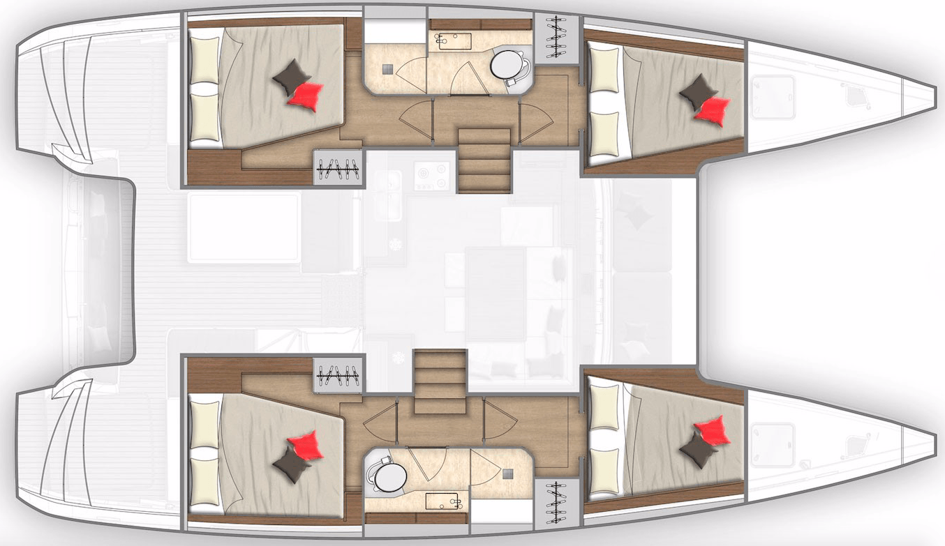 The yacht is delivered to you with full tanks of fuel (yacht & dinghy), full tank of water, 1 bottle of cooking gas in duty + 1 spare bottle.