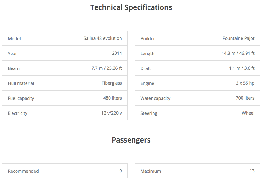 The yacht is delivered to you with full tanks of fuel (yacht & dinghy), full tank of water, 1 bottle of cooking gas in duty + 1 spare bottle.